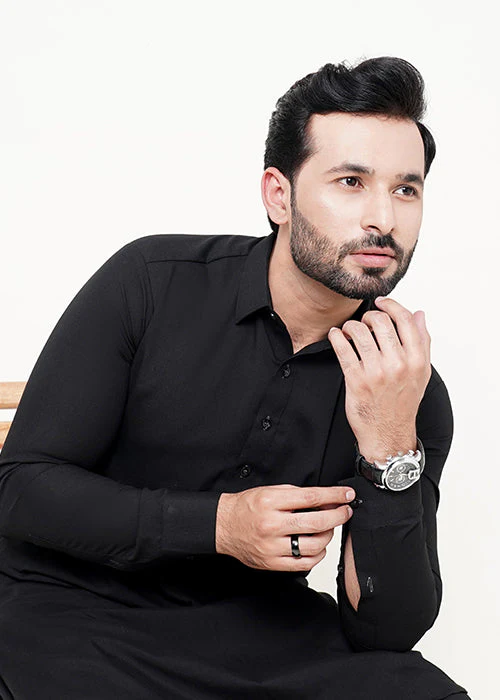 Designed for the contemporary man, this black shalwar kameez blends timeless eastern tradition with modern tailoring for a sleek, polished finish. The versatile black color adds elegance and confidence, making it ideal for daily wear, evening outings, and formal gatherings. Known for its comfort, easy care, and classic appeal, this outfit is a must-have staple for men who value effortless style and premium craftsmanship.