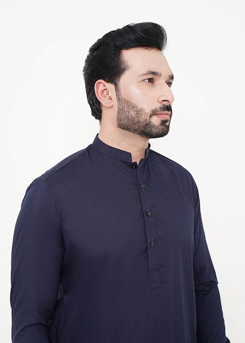 Navy Blue Shalwar Kameez (Ban Collar) by Azlan Shahzad